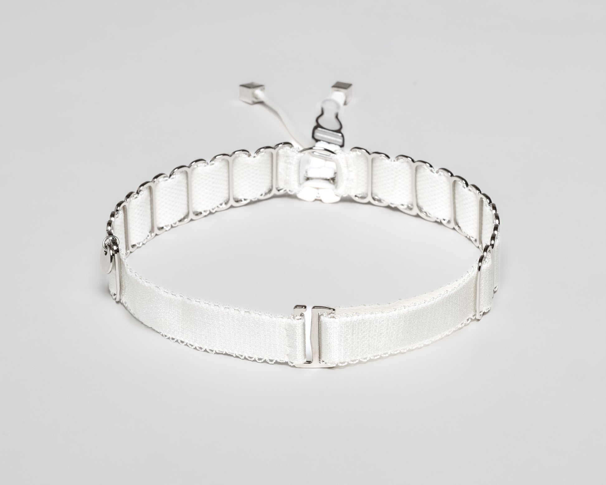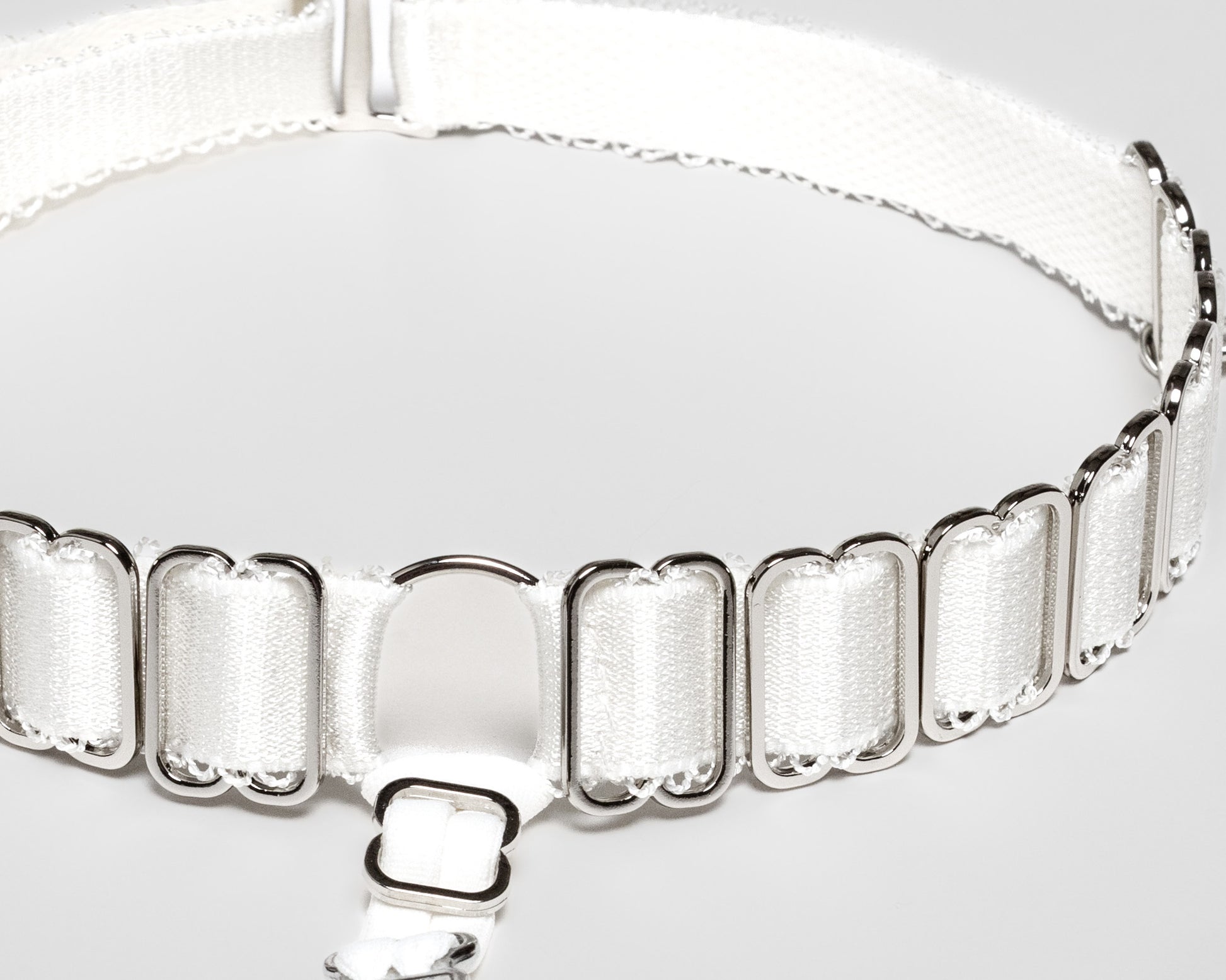 A set of two garters designed to hold stockings securely and beautifully. Made from 2 cm wide satin elastic band in ivory color, each garter features delicate lace trim. The garters are mismatched by design to create a more interesting and modern look: