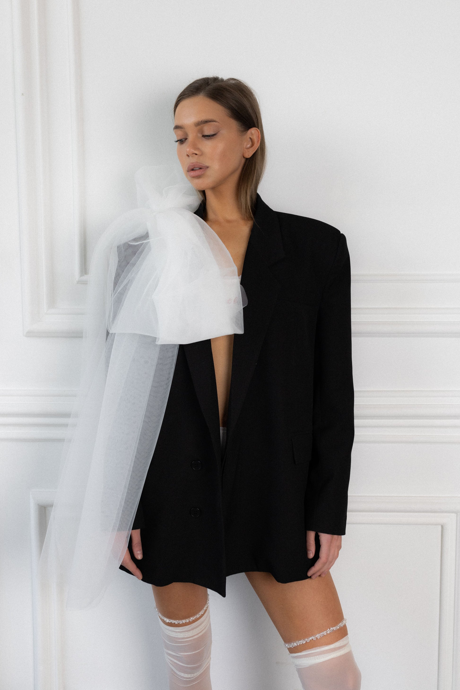 Romantic and refined. Semi-sheer ivory mesh with a raw-cut top and retro back seam — a soft, elongating layer that elevates any look. Made to match our signature garters. Complete your ensemble by pairing them with our adjustable garters (sold separately) to create a more personalized and unique look.