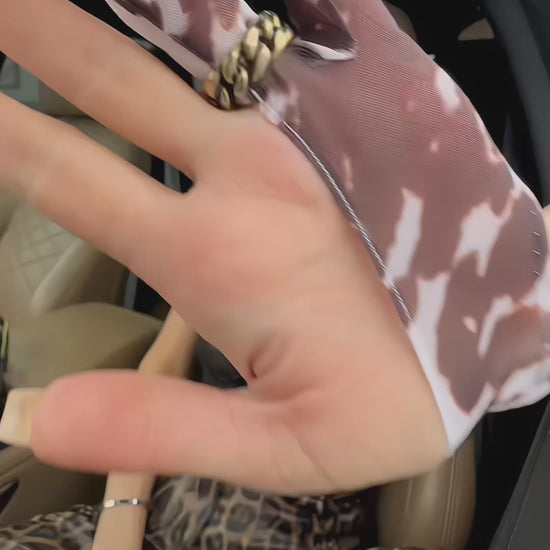 Rancher Brown: two-finger gloves with earthy tones and a cow print blend for a rustic-modern vibe. Lightweight mesh makes them effortless for everyday or statement styling.
